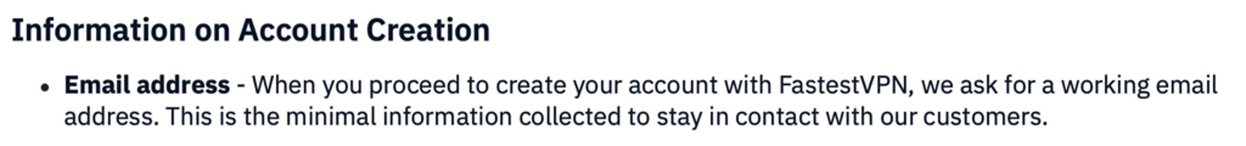 FastestVPN states it only collects your email address and payment details — a minimal data set that appears to be an improvement over its previous policy.
